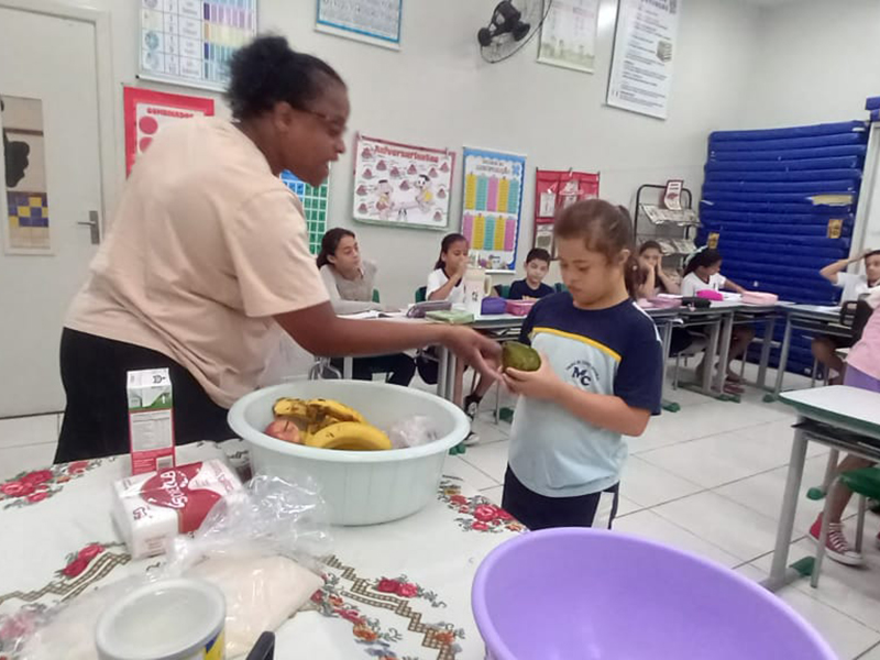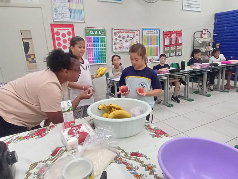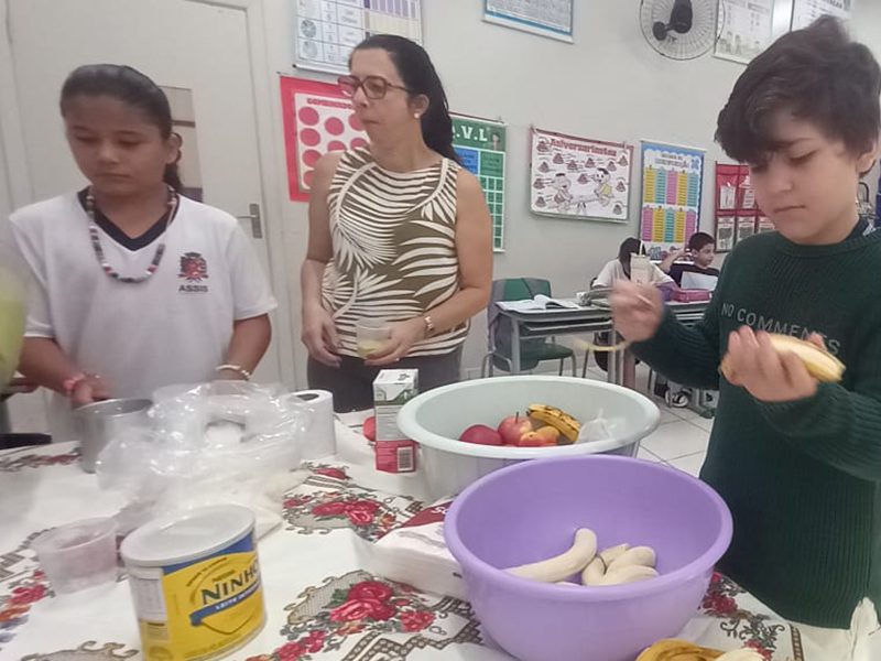 Como ponto alto da atividade, os estudantes participaram do preparo de uma vitamina de tutti-frutti. Essa vivência prática permitiu que os alunos enxergassem, de forma lúdica e saborosa, a relação direta entre os espaços urbano e rural. Desde a produção dos alimentos no campo até o consumo na cidade, foi possível evidenciar a interdependência entre esses dois mundos no cotidiano.
